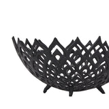 This is the Black Cast Lattice Bowl. A perforated steel display bowl with striking, contemporary pattern. This matt black item is sure to add instant impact wherever it's placed. Pair this vase with the smaller sized version in complementary pattern for a tiered height display.