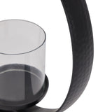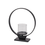 This is the Black Hoop Hurricane Lantern. A simple yet stylish contemporary black steel lantern. Display this lantern with the larger version of it for a staggered height display with an eye pleasing symmetry. For the use of LED faux candles.