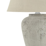 Introducing the Darcy Antique White Table Lamp With Linen Shade, a sleek and sophisticated addition to any space. Crafted with exquisite attention to detail, this lamp boasts a textured stone effect finish in an antique white hue.