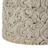 Handcrafted in ceramic, this Seville Collection Grey Marrakesh Urn is a stylish and contemporary jar with removable lid. The bold and distinctive raised pattern that wraps itself around the barrel of this opulent jar is glazed a versatile grey tone. This striking jar would look elegant styled on its own or fabulous displayed as a pair with the larger sized version we also carry (22605).