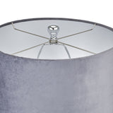 This is the Shamrock Metallic Glass Lamp With Velvet Shade. An elegant lamp of impressive proportions with a uniquely shaped handcrafted glass base. This lamp comes complete with grey velvet shade and in-line switch and will tone beautifully with a variety of decor schemes.