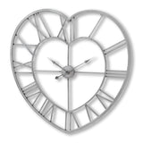 A unique shaped clock featuring a heart design, the wall clock has been handcrafted beautifully to create its curves. This Heart Skeleton Wall Clock is large in size so quite the statement piece, it'll sit comfortably in any setting and help brighten it up. Charming with a minimalistic aesthetic, it features a silver metal frame with roman numeral dials and hands.