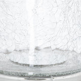 A curved and sleek style candle holder that could be a vessel for much more, use it to display baubles, twinkling fairy lights or a cascading arrangement for the middle of the tablescape. The grey midnight tones ombre to transparent crackled glass, a stunning and subtle feature. For the use of LED faux candles.
