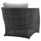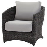 The armchairs come with comfortable seat cushions in a grade 5 Olefin fabric that keep their colour. The cushions are shower-resistant, UV-resistant and easy to remove. Because Olefins are more resistant to mildew than polyester and dry more quickly, they are an excellent choice for furniture exposed to the elements. Ideally cover them when not in extended periods of use and bring them inside during winter months for increased longevity.