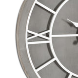 This is the Williston Grey Wall Clock. An eye-catching round wall clock which will fit with a variety of decor schemes. The white metal roman numerals and movement gains great stand-out against its grey painted wood surround. Supplied with hook for wall mounting already attached to the frame, this timepiece will be simple to hang and immediately enjoy. Add 1 x AA battery to start the clock mechanism.