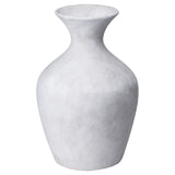 This is the Darcy Ellipse Stone Vase. A timeless, stoneware vase that will subtly layer texture into interiors. An elegant addition with matching items available. A perfect pairing with our faux eucalyptus stems. Please note, this vase's intended purpose is for faux flowers: if customers wish to display real flowers in these they must use a florist's cellophane wrap to contain water.