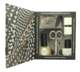 The Ciate Feathered Manicure What A Hoot Gift Set is a nail polish set that includes a variety of accessories to create a unique feathered look for your nails. The set includes a 13.5ml Fast Dry Top Coat Speed Coat Pro 014, a 5ml Mini Nail Polish in Snow Virgin 001, scissors, a nail file block, and feathers.