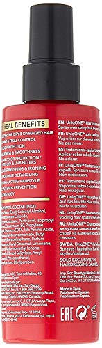 *10 BENEFITS IN 1 PRODUCT: Our 5 star daily-use leave-in hair treatment combines the 10 different benefits your hair needs into just 1 product *EASY DETANGLING: Effortlessly comb through your hair after using this UniqOne leave-in hair treatment that detangles your hair for a knot-free experience *GREAT HAIR IN NO TIME: Whether using the vegan hair treatment on wet or dry hair, this leave-in hair treatment takes action quickly so women can do all the precious things they want with their time *SENSATIONAL SCENT: Our all time iconic and unmistakable fragrance. Elegant rich floral bouquet of white and green flowers *REVLON PROFESSIONAL: Discover our entire range of multi-benefit UNIQONE hair products, now featuring a new bottle shape for better grip and an eye-catch new design