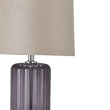 This is the Alberta Metallic Glass Lamp With Velvet Shade. A stylish statement lamp with a uniquely shaped handcrafted reeded / ribbed glass base. This lamp comes complete with neutral velvet shade and in-line switch and will tone beautifully with a variety of decor schemes.