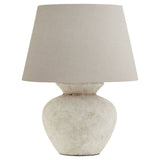 Athena Aged Stone Round Table Lamp With Linen Shade