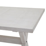 This is the Stamford Plank Collection Dining Table. The Stamford range’s 6-seater dining table is the perfect piece for a relaxed dining space and will instantly lighten the aesthetic of a room. Pared back, timeless and with a weathered familarity. Items from this range will feel like they've always been there the moment they arrive. Deliberately distressed, this handmade, planked pine furniture has an inviting lived-in look, coupled with a calming colour-way. The washed white paintwork of this table pairs beautifully with our Capri collection dining chairs for a laid-back, cosy feel.