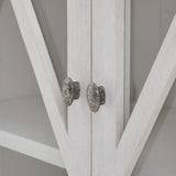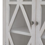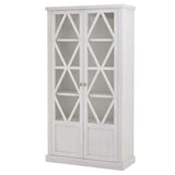 This is the Stamford Plank Collection Tall Display Cabinet. The Stamford range’s display cabinet is the perfect piece for spaces with a relaxed aesthetic. It will instantly lighten the feel of a room with its airy, lattice patterned, tempered glass doors. Pared back, timeless and with a weathered familarity, items from this range will feel like they've always been there the moment they arrive. Deliberately distressed, this handmade, planked pine cabinet has an inviting lived-in look, coupled with a calming colour-way. Use its 5 internal shelves for styling and storage.