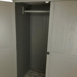 The Oxley Collection Wardrobe is a handsome item offering plentiful and varied storage space. Washed wood plank top blended with a body in a warm grey hue deliver a relaxed, informal feel to any space. Stylish as well as functional, this high quality item would be equally at home in traditional and contemporary styled homes. This great storage solution offers three drawers (one large, two small) topped by a full width hanging space behind two doors.