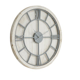 This is the Williston White Wall Clock. An eye-catching round wall clock which will fit with a variety of decor schemes. The light grey metal roman numerals and movement gains great stand-out against its white washed wood surround. Supplied with hook for wall mounting already attached to the frame, this timepiece will be simple to hang and immediately enjoy. Add 1 x AA battery to start the clock mechanism.